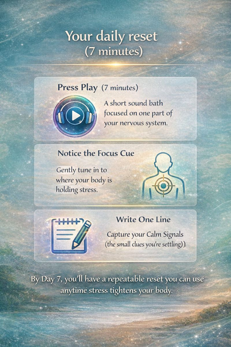 A free 7-day guided sound bath experience that helps you recognize the simple signs your nervous system is settling, so you can feel more in control of your physical and mental emotions